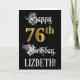 An der Vorderseite dieses opulenten und aufwändigen Geburtstagskarten-Designs steht die Meldung "Happy 76 th Birthday", und ein benutzerdefinierbarer Empfängername. Ein Teil der Nachricht ist in einem extravaganten Skripttext enthalten. Die große Zahl "76." weist ein in Gold inspiriert Imitat/Imitation-Look-Muster auf. Der Hintergrund ist schwarz. Die Innenseite verfügt über eine individuell anpassbare Geburtstagsgrüßnachricht, oder könnte gelöscht und links werden, wenn eine Nachricht von Hand geschrieben werden soll. Eine so personalisierte Geburtstagskarte wird vielleicht zum Feiern des sechsundsiebzigsten Geburtstags verschickt. [~Z0000559]