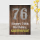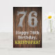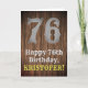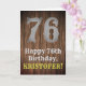 Dieses Land und von American Wild West Geburtstags-Thema Grußkarte Design verfügt über einen großen rustikalen Look Nummer "76", die Meldung "Happy 76. Geburtstag", ein personalisierter Name und ein Imitat/Imitation Holz Getreide Look-Muster Hintergrund. Das Innere hat eine eigene Geburtstagsgrüße, oder könnte gelöscht und links werden, wenn eine Nachricht von Hand geschrieben werden soll. Eine individuell gestaltbare Geburtstagskarte wie diese könnte eine lustige Art sein, jemandem, der seinen sechsundsiebzigsten Geburtstag feiert, Geburtstagswünsche zu schicken. [~Z0000469]