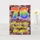 Die Vorderseite dieser bunten, rustikalen und naturlich inspirierten Geburtstagskarte zeigt eine große Zahl "76" mit einem Regenbogenspektrum inspiriert Muster. Es enthält auch die Meldung "Happy 76 th Birthday", und einen bearbeitbaren Namen. Die Vorderseite zeigt einen Hintergrund mit rustikalen gefallenen Herbstblättern. Im Inneren befindet sich eine individuell angepasste Geburtstagsgrüßbotschaft, oder man könnte sie löschen und leer verlassen werden, wenn eine Nachricht von Hand geschrieben werden soll. Eine personalisierte Geburtstagskarte wie diese könnte eine lustige Art sein, eine Botschaft zum Feiern des sechsundsiebzigsten Geburtstages von jemandem zu senden. [~Z0000384]