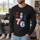 Celebrate American heritage with this bold "76" graphic long sleeve tee. Featuring a gritty, tactical design with three stylized skulls and stars in red, white, and blue, this shirt captures the spirit of 1776. Perfect for patriots, veterans, and fans of military-inspired streetwear who want a rugged, timeless look.