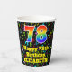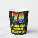 Dieses lustige und farbenfrohe Musik-Thema Geburtstag Papier Becher Design zeigt eine große Zahl "78" mit einem Regenbogenspektrum inspirierten Muster. Es enthält auch die Meldung "Happy 78 th Birthday", und einen personalisierten Namen. Der Hintergrund zeichnet sich durch ein spannendes und farbenprächtiges Farbmuster verschiedener Musiknoten und Symbole in verschiedenen Farben und Größen aus. Farbenfrohe, lebendige Papiertücher wie diese könnten Spaß machen bei einer Geburtstagsparty, die zur Feier des 78. Geburtstages von jemandem veranstaltet wird. [~Z0000541]