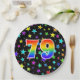 Dieses fröhliche, farbenfrohe und lustige Papier-Platte-Design verfügt über eine große Zahl "79" mit einem Regenbogenspektrum inspirierte Muster. Der Hintergrund weist ein Muster von bunten Sternformen auf. Teller dieser Art können zum Feiern eines 79. Geburtstages verwendet werden, zum 79. Geburtstag eines Paares, zum 79. Geburtstag, oder zu einer anderen neunundsiebzigsten Veranstaltung. [~Z0000493]