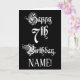 An der Vorderseite dieses üppigen und opulenten Geburtstags-Thema Grußkarte Design präsentiert sich die Meldung "Happy 7th Birthday", in luxuriösem Text im Skriptstil, auf einem schwarzen Hintergrund. Die Innenseite verfügt über eine benutzerdefinierte Geburtstagsgrüßbotschaft oder könnte gelöscht und leer verlassen werden, wenn eine Nachricht von Hand geschrieben werden soll. Eine aufwändige, editierbare Geburtstagskarte wie diese könnte dazu verwendet werden, jemandes siebten Geburtstag zu feiern. [~Z0000554]