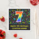 Dieses lustige, farbenfrohe und lebendige Geburtstagsthema Papier Serviette Design zeichnet sich durch eine große Zahl "7" mit einem Regenbogenspektrum inspirierten Muster aus. Es enthält auch die Meldung "Happy 7th Birthday", und einen benutzerdefinierbaren Namen. Ein Teil des Hintergrundes hat farbenfrohe Musiknoten und Symbolmuster. Geburtstagsbespiele wie diese könnten bei einem Party, das zum siebten Geburtstag von jemandem abgehalten wird, Spaß machen. [~Z0000421]