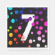 Neon Regenbogen Punktmuster auf schwarzem Hintergrund für die 7. Geburtstagsparty. Alter kann bearbeitet werden. Die schwarze Hintergrundfarbe kann geändert werden.