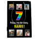 Dieses sehenswerte und kühn geburtenorientierte Geschenktütendesign zeigt eine große Zahl "7" mit einem farbenprächtigen Regenbogenspektrum, inspiriert Farbverlaufsmuster, zusammen mit der Meldung "Happy 7th Birthday" und einem personalisierten Empfängernamen. Die Fotos über und unter der Nachricht können personalisiert sein, vielleicht mit Fotos des Empfängers, der Familie und Freunden des Empfängers und/oder dem/den Absender(en) des Geschenks. Eine Geschenktasche wie diese kann verwendet werden, wenn Geschenke oder Geschenke umhüllt werden, die jemandem zur Feier seines siebten Geburtstages gegeben werden. (Fotografie © Storytree Studios, Stanford, CA.) [~Z000669]