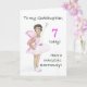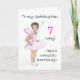 Eine 7. Geburtstagskarte für eine Patchstochter, mit einer schwarzen Fee in einem rosa Kleid, aus einer Aquarellbild von Judy Adamson. Bitte fühlen Sie sich frei, die innere Nachricht anzupassen und kontaktieren Sie mich durch meinen Shop, wenn Sie Änderungen an der Frontabdeckung möchten.