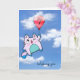 Niedliche Kitty-Illustration mit rotem Ballon, der in Wolken zum 7. Geburtstag schwebt.