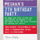 Helle Farben und feines Design in Stripes. 7. Geburtstagsfeier Einladung All-in-One-Karte. Einladungen zum 7. Geburtstag.
