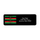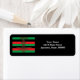 Ein Kwanzaa-Mailing-Label, das die sieben Urlaubsprinzipien und deren Bedeutung in den Farben Grün, Schwarz und Rot Staaten