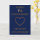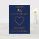 Feiern Sie sieben wunderbare Jahre Liebe mit dieser klassischen, gefalteten 7. Jubiläumskarte mit tiefblauem Hintergrund und Kupfermotiven. Die Worte "Happy 7th Anniversary" strahlen in einem raffinierten metallischen Ton aus und machen das Frontdesign sowohl elegant als auch zeitlos. Innen verlassen ist Platz für ein personalisiertes Paar Foto, gerahmt mit delikaten Blumendekorationen oben links und unten rechts Ecken. Ein Paar miteinander verflochtene goldene Ringe schmücken den links Boden und symbolisieren die ewige Liebe. Auf der rechten Seite befindet sich eine bearbeitbare Jubiläumsbotschaft, die perfekt ist, um Ihre eigenen herzlichen Worte zu äußern. Ein luxuriöser Sake für diesen bedeutsamen Meilenstein.