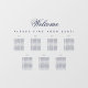 Eine einfache, transparente Sitzkarte mit 7 Tischen, empfohlen für eine marineblaue Hochzeit, aber auch zu anderen Anlässen verwendbar. Es handelt sich um eine Fensterverkleidung, die auf ein Fenster oder eine andere durchsichtige Glas- oder Acryloberfläche gelegt werden kann. Der gesamte Text ist marineblau. Das Wort Willkommen ist in einem eleganten kalligrafischen Skript geschrieben, die Erholung in Kappen. Die Tabellen befinden sich auf 2 Zeilen. Über ihnen und unter dem Wort "Willkommen" steht die Meldung "Bitte finden Sie Ihren Sitzplatz!".
