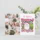 Eine kühne Drehung über klassischen Beifall - dieses spielerische Weihnachtsdesign von "Merry & Bright" besticht durch trendige schwarz-weiße Schachmuster, einen rosa Santa, Bonbons und einen süßen Pastellbaum mit einem Polka Dotbow. Es ist perfekt für Familien, die ihren Urlaub ein wenig genießen und viel mehr Spaß haben möchten. Mit zwei festlichen Fotos und Ihrem Familiennamen für ein fröhliches Weihnachtsfest.