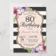 80. Geburtstag Einladung Frauen. Floral Gold Black
