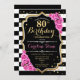 80. Geburtstag Einladung Rosa Schwarz-weiße Streif