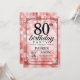 80. Geburtstag Einladung mit Red String Lights mit Red Glitzer Background. Rot Geburtstag. Erwachsener zum Geburtstag. Männer oder Frauen laden ein. 13. 15. 16. 18. 20. 21. 30. 40. 50. 60. 70. 80. 90. 100. Jedes Alter. Für weitere Anpassungen klicken Sie bitte auf die Schaltfläche "Anpassen" und verwenden Sie unser Designwerkzeug, um diese Vorlage zu ändern.