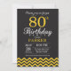 80. Geburtstag Einladung mit Schwarz und Gelb Zickzack. Tafel. Erwachsener Geburtstag. Mann oder Frauen laden ein.