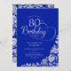 80. Geburtstag Elegant Royal Blue Silver Rose Einladung