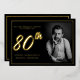 80. Geburtstag Elegantes Foto Black Gold Folieneinladung