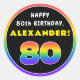 Dieses fröhliche und kühn geburtenorientierte Rundaufkleber-Design mit einer großen Zahl "80", die ein lebendiges Regenbogenspektrum inspiriert Farbverlaufsmuster, die Meldung "HAPPY 80th BIRTHDAY" und einen anpassbaren Empfängernamen hat. So genannte Geburtstagsaufkleber können in einem Party, das den achtzigsten Geburtstag feiert, verwendet oder verbreitet werden oder vielleicht zum Umpacken von Geschenken oder zur Vorbereitung von Einladungen für solche Veranstaltungen verwendet werden. [~Z0000637]