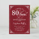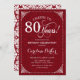 Einladung zum 80. Geburtstag. Elegantes Vintages Rot-Weiß-Design mit Damast-Muster. Enthält Skript-Schriftart. Bis 80 Jahre! Kann in jedem Alter personalisiert werden! Nachricht, wenn Sie weitere Anpassungen benötigen.