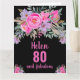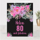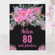 Elegante 80. Geburtstagskarte mit rosa Aquarellblumen-Design auf schwarzem Hintergrund. Personalisieren Sie mit Ihrem Namen und Text.