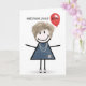 Niedliches Strichmännchen mit blonden Haaren, Sneakers, Denimkleid, Perlenhalskette und rotem Ballon zum 80. Geburtstag. Die Farbe des weißen Hintergrunds kann geändert werden.