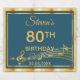 Ein Schaumweinflaschenlabel für eine elegante aquamarine, blaue und goldene 80. Geburtstagsfeier. Vorlagen für den Namen, das Alter und das Datum des Party. Goldene Buchstaben. Aquamarine Hintergrundfarbe und ein Imitat goldener Rahmen und goldene Musiknoten. Sie können die Hintergrundfarbe so ändern, dass sie Ihrem Thema entspricht. Klicken Sie auf Anpassen und dann auf der rechten Seite auf "Hintergrundfarbe auswählen".