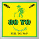 80 Jahre alt fühlen den Schmerz alten Mann kauert über zu Fuß mit Stock. Ganz unten steht "Feel the Pain"