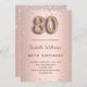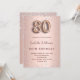 Eine moderne, stilvolle und glamouröse Einladung zu einer 80. Geburtstagsfeier. Ein Imitat Rose gold metallische Hintergrund mit rosa Diamanten. Der Name ist mit einer modernen dunklen Rose goldfarbenen Handschrift geschrieben, die als Stilschrift dient. Personalisieren Sie Ihre Party-Daten und fügen Sie sie hinzu. Nummer 80 wird mit einem Schriftart im Ballonstil geschrieben, Skript.