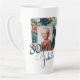 Elegantes 80 und fabelhafte Blume Muster Geburtstag Foto Latte Tasse. 80 und fabelhafte Texte in trendiger Schrift und einem eleganten und schönen Blume-Muster. Personalisieren Sie es mit Ihrem Namen und Foto, und machen Sie personalisierte elegante Blumengeburt latte Tasse für sie.