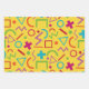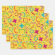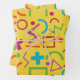 Das ist niedliches geometrisches, abstraktes Muster auf gelbem Hintergrund, das im 80er- und 90er-Stil entworfen wurde. Es ist ein großartiges Verpackungspapier für Retro-80er-Pop-Kunstliebhaber.