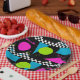 Dieses neonfarbene, geometrische Platteraindesign bringt Sie direkt zurück zum 80er.