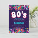Eine Groovy Retro 80er Geburtstagsfeier. Dieses farbenfrohe 80er Jahre-Design zeichnet sich durch abstrakte Formen auf dunkelblauem Hintergrund aus. Einfach mit eigenen Diskotheken aus den 80er Jahren oder thematischen Party aus den 80er Jahren anpassen.