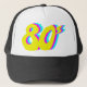 80erachtziger jahre Neongraphik mit Gelbem, Magentarotem und Cyan-blauem.
