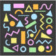 Muster im Stil der 80er Jahre in bunten Formen von grün, gelb, blau und gelb auf schwarzem Hintergrund.
