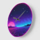 80s Synthwave Neon Sunset Circle Geometric Graphic Große Wanduhr