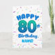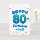 Celebrate their 80th birthday with a bright, cheerful, and personalizable birthday card! This custom name birthday card features a bold number eighty balloon and colorful confetti.