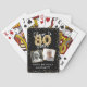 80th Birthday Cheers to 80 Years 2 Photos Black Playing Cards. Celebrate an 80th birthday with this deck of playing cards as a commemorative keepsake gift or party favor featuring 2 photos, the title CHEERS TO 80 YEARS with faux metallic gold foil balloon numbers and confetti and modern script typography and your custom text and your choice of background color (shown in black). ASSISTANCE: For help with design modification or if you would like coordinating items, contact the designer BEFORE ORDERING via the Zazzle Chat MESSAGE tab or email makeitaboutyoustore@gmail.com.