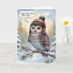 80th Birthday Watercolor Owl In Winter Hat Karte