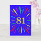 Eine explosive 81. Geburtstagskarte! Was für eine wunderbare Art, Geburtstagsgrüße zu schicken. Die Zahl 81 in hellgelb mit einer Explosion von hellen Farben und Sternen.