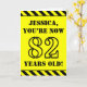 Auf der Vorderseite dieses aufmerksamen und kühnen Geburtstagskarten-Designs steht ein personalisierter Name und die Meldung "YOU’RE NOW 82 YEARS OLD!" in inspirierter schwarzer Schablone auf gelbem Hintergrund. Die Vorderseite weist auch ein auffälliges schwarz-gelb gestreiftes Muster an den oberen und unteren Rändern auf. Im Inneren befindet sich eine benutzerdefinierte Geburtstagsgrüßbotschaft, oder man könnte sie löschen und leer verlassen werden, wenn eine Nachricht von Hand geschrieben werden soll. Eine personalisierte Geburtstagskarte wie diese könnte eine lustige Art sein, eine Botschaft zum Feiern des zweiundachtzigsten Geburtstages von jemandem zu senden. [~Z0000413]