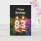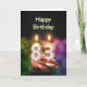 Ein Geburtstagskuchen mit Kerzen. Die Kerzen bestehen aus der Nummer 83, zu einem 83. Geburtstag. Eine Geburtstagskarte für jeden geeignet.