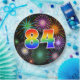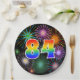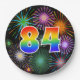 Diese farbenfrohe, fröhliche und lustige Papierplatte zeichnet sich durch eine große Zahl "84" aus, die ein inspiriertes Farbmuster mit einem Regenbogenspektrum aufweist. Es zeichnet sich auch durch ein spannendes und lebendiges, aufstrebendes Feuerwerk inspiriert Muster aus. Der Hintergrund ist schwarz. Teller wie diese können sich bei einem Party, das zum Feiern des vierundachtzigsten Geburtstags von jemandem abgehalten wird, bei einem 84. Jahrestag oder bei einem anderen 84. [~Z0000490]