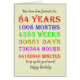 84. Geburtstagskarte, die die Jahre, Tage, Monate, Stunden und Minuten hinunter zählt. Eine Karte, die zum Nachdenken anhält! Es wurden die Leap-Jahre berücksichtigt!