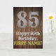 Dieses Land inspiriert und American Old West inspiriert Geburtstag Grußkarte Design bietet einen großen rustikalen Look Nummer "85", die Meldung "Happy 85 th Birthday", einen personalisierten Namen, und ein Imitat/Imitation Holz Getreide inspiriert Look Muster Hintergrund. Die Innenseite hat eine individuelle Geburtstagsgrüßnachricht, oder könnte gelöscht und leer verlassen werden, wenn eine Nachricht von Hand geschrieben werden soll. Eine so genannte Geburtstagskarte kann dazu verwendet werden, den fünfundachtzigsten Geburtstag eines Menschen zu bestätigen. [~Z0000469]