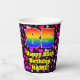 Dieses bunte und lustige Geburtstagsthema Papier-Cup-Design zeichnet sich durch eine große Zahl "85" mit einem inspirierten Regenbogenspektrum-Muster aus, zusammen mit der Meldung "Happy 85 th Birthday" und einem individuelle Name. Der Hintergrund ist mit roten, lila und rosa Herzformen unterschiedlicher Größe gestaltet. Es macht Spaß, freundliche Papiertassen wie diese zu feiern, während ein Geburtstagsfest/Party zum 85. Geburtstag von jemandem gefeiert wird. [~Z0000548]
