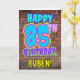 An der Vorderseite dieses lustigen Geburtstagskarten-Designs steht die Meldung "HAPPY 85 TH BIRTHDAY" mit einem farbenfrohen, lebendigen, urbanen Straßenkunst und Graffiti-inspirierten Aussehen, zusätzlich zu einem benutzerdefinierten Empfängernamen. Der Hintergrund der Vorderseite weist ein Muster auf, das durch das Aussehen einer Ziegelwand inspiriert wird. Die Innenseite hat eine personalisierte Geburtstagsgrüßbotschaft, oder könnte gelöscht und leer verlassen werden, wenn eine Nachricht von Hand geschrieben werden soll. Eine lustige, individuell anpassbare Geburtstagskarte wie diese kann dazu verwendet werden, den fünfundachtzigsten Geburtstag von jemandem zu feiern. [~Z0000531]