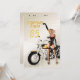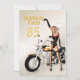 Ein schönes Bikermädchen zeigt auf Ihre Party Einladung. Eine unwiderstehliche Einladung für Männer jeden Alters.