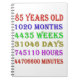 85. Geburtstag, der die Jahre, Tage, Monate, Stunden und Minuten hinunter zählt. Ein Geburtstagsgeschenk zum Nachdenken! Es wurden die Leap-Jahre berücksichtigt!
